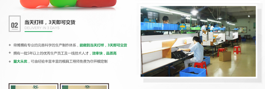 廣東帝博科技有限公司位于世界工廠東莞市東坑鎮(zhèn),是一家自營生產(chǎn)塑膠、PVC、硅膠、橡塑生活制品的研發(fā)設(shè)計型企業(yè),主要以各類型塑膠,橡膠,硅膠制品為主,對多種類型工藝及技術(shù)型生活周邊用品進(jìn)行研發(fā)生產(chǎn)及銷售服務(wù),目前主營產(chǎn)品覆蓋全球多個行業(yè)運(yùn)用,是一家全方 面生產(chǎn)銷售型技術(shù)企業(yè),帝博一直以來的宗旨是:“以消費(fèi)者為中心,以質(zhì)量求發(fā)展”“以誠信為本質(zhì),以服務(wù)為大眾”“以團(tuán)結(jié) 共拼搏,以奉獻(xiàn)為仁愛”!