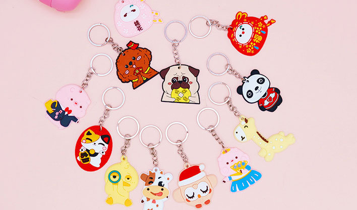 金屬鑰匙扣一般會(huì)選用銅、鋅合金等資料,資料價(jià)格就比軟膠貴,而PVC卡通立體公仔鑰匙扣選用的是環(huán)保PVC質(zhì)料制造而成的,價(jià)格相對要廉價(jià)許多。PVC卡通立體公仔鑰匙扣造型繁復(fù),有卡通型,品牌型的,人物的,生果的,花草樹木等等。